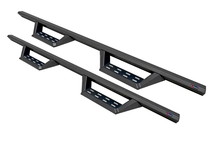 - Bolt-on adjustable drop steps with formed step surface that feature reverse punch plate for maximum traction