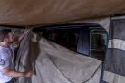 The Deluxe Awning room features a durable waterproof floor and its own separate ceiling, enhancing insulation from the sun. All 4-wall panels incorporate zipper operated access doors. The rear wall, located towards the vehicle, can be unzipped to provide access to the vehicle. The mesh pocket organize can be located on the right or left of the rear panel to house your magazines or personal items, helping everything have its place. Two zippered ports located in the top corners allow for power cable access and power cord guides are incorporated into the roof corners to keep cables tidy and safe. The 3 exterior walls are dual layers, featuring solid external panels, which can be zipped closed for protection and privacy or rolled up to reveal the internal mesh panels. The D shaped front mesh panel can be fully opened to reveal the natural setting while the side mesh incorporates zippers in the middle and base to accommodate entry and exit of the room.
