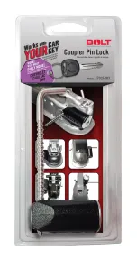 Opens with your vehicle ignition key. Fits couplers from 1/2 in. to 3 3/8 In. and any size in between. Stainless steel pin. Lock slides back and forth along pin for ease of use. 1/8 in. incremental adjustments allows for a snug fit. Weather proof. Plate tumbler sidebar to prevent picking and bumping. Stainless steel lock shutter to keep out dirt and moisture. Limited lifetime warranty.