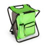 - Insulating cooler with backpack straps and scaffolding that unfolds to create a seat
