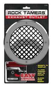 Rock Tamers RT200 Exhaust Outlet -- An add-on mudflap accessory item that allows hot exhaust gases to flow through the mudflap. Designed to keep rubber mudflaps from overheating when used on vehicles with rear facing exhaust systems (factory as well as aftermarket).
