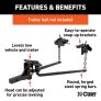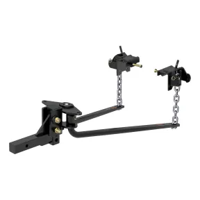 Your route is planned and the trails are calling, but before you can cover any ground, you need to start with a solid connection between your tow vehicle and trailer. The CURT round bar weight distribution hitch with integrated lubrication offers a smooth ride and level towing with its heavy-duty components and built-in lubrication system. From travel trailers to popup campers, the CURT WD hitch is the perfect camping companion to let you Bring It. The strength of the round bar WD hitch begins with its heavy-duty, formed steel head. The formed construction allows for a precise design and supplies the durability needed to manage the weight of heavy trailers. Something unique to the weight distribution hitch is its grease zerk fittings, built directly into the head, allowing for easy, continuous lubrication at the spring bar mounting location. The spring bars are installed from the underside of the WD head and are made with forged steel for optimum strength. Like other CURT weight distribution hitches, the round bar hitch comes with a highly adjustable shank and chain hookup brackets for the perfect amount of tension to level the load. The shank fits any 2" x 2" receiver tube opening, making it compatible with most class 3, class 4 and class 5 trailer hitches. The head is also compatible with our 2-1/2" weight distribution shanks to match the heaviest of class 5 hitches. The hookup brackets and spring bars of the CURT WD hitch use chains and a simple snap-up design for easy setup and adjustment. This particular round bar weight distribution hitch offers a towing capacity ranging from 8,000 to 10,000 lbs. GTW and 800 to 1,000 lbs. TW. It comes with installation hardware, though a trailer ball must be purchased separately. The built-in sway control attachment tabs on the head allow it to readily accept one or two sway control units #17200. To protect this WD hitch on the way to your next destination and beyond, it also comes with a durable carbide powder coat finish.