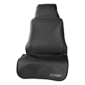 The CURT Seat Defender car seat cover is a universal, use-as-needed seat cover protection system that readily installs whenever you need it. It provides an instant defense against dirt, spills, pet dander and any other threats to your vehicle's interior. What makes it unique is its use-as-needed design. Rather than being a permanent cover-up for unsightly interior that has already been damaged, Seat Defender seat covers act as a barrier to prevent the damage before it happens. Unlike seat covers that require tedious installation, the Seat Defender is designed to be easy to put on and take off, whenever needed. It attaches securely to the headrest and conforms to the shape of the seat, giving the seat a tough, waterproof outer layer. CURT Seat Defender seat coverings are also easy to store and keep clean. Because it is not a permanent seat cover, it is designed for fast cleanup, fast foldup and fast installation the next time you need it. It easily protects against wet clothes, dirty tools, muddy sports equipment, shedding pets, sandy swimsuits, messy fast food and more. It is also 100% machine washable and can be stored in any small compartment in your vehicle. The CURT Seat Defender is made out of a two-sided material to provide a sophisticated barrier against potential threats. The underside is a layer of water-resistant thermoplastic rubber (TPR). TPR is durable and wear-resistant and provides added comfort and safety by gripping the surface of the seat. The top side is a woven 600-denier terylene fabric that keeps dirt and spills out and maintains comfort for the user. Seat Defenders are the perfect seat covers for cars, trucks, minivans, SUVs and more. They're great for pet owners, outdoor enthusiasts, sports lovers, industrial and commercial workers, frequenters of the beach or boat landing and many others. They also make great baby car seat covers!
