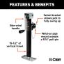 - Swivel bracket allows jack to fully swing up and out of the way for travel