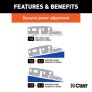 The CURT Spectrum trailer brake controller provides powerful brake operation while maintaining a clean, consistent OE look and feel on the dash of your vehicle. It is comprised of a main module and a separate user interface. This interface is a simple rotary knob with a push-button and ten tri-color LEDs to control and monitor all trailer brake activity. It also features a triple-axis accelerometer for highly responsive, smooth stops on any grade. The separated module and interface of the Spectrum brake controller allow it to integrate with the vehicle unlike any other. The main module can be mounted behind the dash and completely out of sight. The separate rotary knob provides a sleek, subtle interface that mounts on the dash of the vehicle wherever desired. It features ten LEDs with three colors each (red, green and blue) to indicate trailer brake activity and power adjustment. The rotary knob and integrated push-button allow for simple and effective operation of the control settings and manual adjustment. The Spectrum trailer brake controller offers superior safety and helps protect the life of your vehicle and trailer with its advanced triple-axis accelerometer. This integrated circuit detects the motion of the vehicle and trailer when making stops and applies the precise amount of brake power for maximum efficiency and effectiveness. The three axes of the circuit also enable the brake control to compensate when going up or down a hill. Like most CURT brake controllers, the Spectrum installs using one of our vehicle-specific quick plug harnesses. It also has automated leveling and calibration capabilities to simplify and speed up the installation process. The Spectrum trailer brake controller comes with mounting hardware for a complete installation.