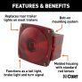 - Features a molded housing with standard red lenses
