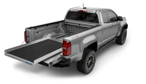 The DECKED CargoGlide truck bed sliding tray is a sliding tool box that makes loading, unloading and accessing your tools and gear easy, safe and fast. Never climb into the bed of your truck to retrieve your gear ever again.