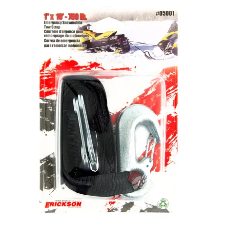 (1) 1"x10' 750 lb Emergency Snowmobile Tow Strap Black