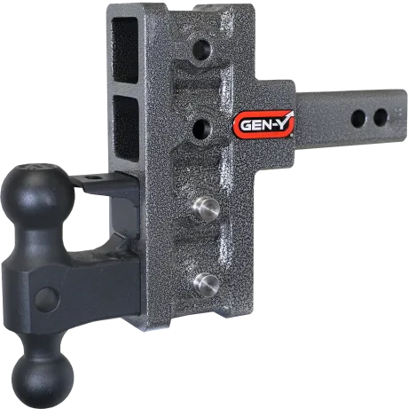 GEN-Y's Mega-Duty Adjustable Drop Hitches start at 10,000 LB towing capacity and go up to 32,000 LB towing capacity. There are multiple drop options as well depending on your trailer towing needs.