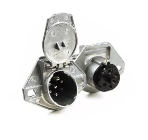 Grote s Heavy Duty 7-Way Connectors are designed to meet and exceed SAE J560 specifications. Special features include 2 mounting holes, a plated-steel cable guard to prevent cable chafing, and the use of a stainless-steel spring.
