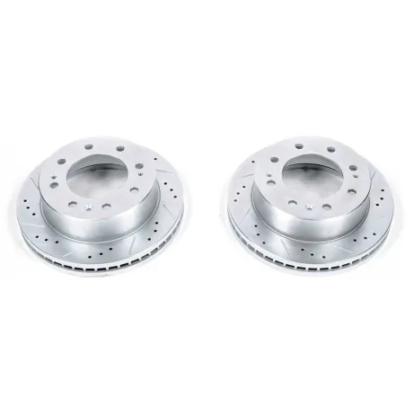 Power Stop drilled and slotted rotors provide a bolt-on upgrade for improved brake cooling and performance. Precision cross-drilled for maximum cooling and maximum performance during extreme conditions; rounded slots sweep away gasses, dust, and moisture to keep a clean friction contact patch on the rotor surface. Silver zinc dichromate plating resists rust and corrosion. With a direct OE fit, there are no special modifications needed.