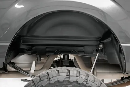Transform Your Super Duty's Rear End: Give your Ford F-250 or F-350 Super Duty a sleek, finished look with Rough Country Rear Wheel Well Liners. Crafted from high-density polyethylene plastic, these liners are built tough to handle the harshest conditions while filling the exposed gap between your truck's frame and body for a clean, factory-style appearance, especially noticeable after lifting. Rugged Protection You Can Count On: Designed to shield your truck's rear wheel wells from rocks, dirt, salt, mud, and road debris, these liners act as a durable barrier against everyday abuse and extreme weather. Their contoured, all-black finish not only adds aggressive style but also makes cleaning quick and hassle-free by covering those hard-to-reach areas. Simple Installation, Lasting Performance: With a precision fit tailored to your Super Duty, these liners install easily using a bolt-on process and basic hand tools, no complicated modifications required. Plus, they're backed by Rough Country's Limited Lifetime Warranty, giving you long-lasting protection and peace of mind.
