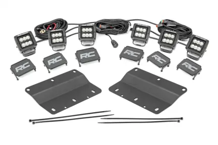 Light Up the Night. Looking to add some serious lighting power to your Bronco? Look no further than Rough Country's Bronco Triple Cube Fog Light Mount Kit! This handy kit lets you fit an impressive three sets of Rough Country's 2-in cube lights on your factory steel bumper, increasing your lighting power and visibility during nighttime adventures. Each light contains six 3-watt high-intensity Cree LEDs, providing a brighter, more focused beam of light that will help you navigate any terrain with confidence. Made to Last. The IP67 waterproof rating ensures that these lights can withstand the harshest conditions you can throw at them, from the mud and dirt of off-road trails to the concrete and asphalt of the city streets! The included LED lights produce an incredible 14,000 lumens, making it easy to see in even the darkest conditions. Additionally, the Moisture Breather technology reduces moisture build-up behind the lens, making sure your lights always perform at their best. So, whether you're driving through thick fog or inching your way down a dark trail, you can rest assured that you'll have the visibility you need. Installation. This 100% bolt-on kit discreetly mounts into your OEM bumper, right in the factory fog light location. The brackets are hidden from view for a clean and flush factory-looking install. But don't let the sleek design fool you - this thing is built tough! Our kit also includes premium, flat-wound wiring harness with an on/off switch. No cutting or drilling is required, so you can get this installed and hit the trail in no time flat. Limited Lifetime Replacement Warranty. Rough Country's products are backed with a limited lifetime replacement warranty towards manufacturer defects. As such, the product is protected from structural and workmanship damage after the date of purchase. With our industry-leading warranty, give yourself peace of mind when using Rough Country's products!