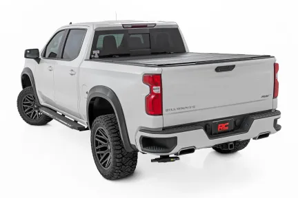 Aggressive Style Meets Everyday Functionality: Upgrade your truck's look and performance with Rough Country's AC2 Running Boards. These premium cab-length steps combine rugged durability, modern styling, and practical convenience in one sleek package. Built for Strength and Style: Crafted from heavy-duty, one-piece aluminum, the AC2 Running Boards deliver exceptional strength without the weight. A black powder-coated finish offers superior corrosion resistance, shielding against rust, wear, and harsh weather. Maximum Accessibility: Easily enter and exit your truck thanks to the wide step surface and lowered profile, perfect for lifted vehicles or daily drivers alike. The cab-length design offers full coverage and enhances your truck's side profile with clean, aggressive lines. Integrated Illumination: Stay visible and stand out with built-in LED lighting. Customizable LED Output lets you choose between amber or white via an internal switch, while Automatic Activation engages the lights when your door opens, thanks to a built-in magnetic sensor. Enhanced Protection and Clean Looks: The AC2 boards also provide a barrier against road debris, rock chips, and mud while covering up exposed frame components for a seamless, finished appearance. Body Lift Compatible: No need to worry about aftermarket modifications, these boards are fully compatible with or without a body lift, ensuring a perfect fit across various setups. Hassle-Free Installation: Install with ease using Rough Country's simple, bolt-on design. No cutting, welding, or drilling required. Warranty You Can Trust: Backed by Rough Country's Limited Lifetime Warranty on structural components and a 1-year warranty on the finish for total peace of mind.