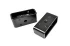Durable Components. Upgrade your rear suspension with Rough Country's Lift Block Kit. This 2" lift block is made of durable nylon composite blocks, making it stronger and offers a longer lifespan than cast blocks. Giving you a 2-inch rear lift, our Lift Blocks will increase ground clearance while maintaining factory ride quality. Designed to improve your truck's weight distribution, they can extend the life of your suspension by reducing rear sag. These powder-coated black Lift Blocks are also tapered to reduce driveshaft angle. With an installation time of 2-3 hours, Rough Country's Suspension Lift Blocks offer an inexpensive way to easily add lift to the rear suspension of your truck, jeep, or SUV.