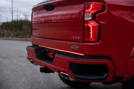 Enhance the rear of your truck with Rough Country's Quad-Row Multifunction LED Tailgate Light Strip. This easy-to-install LED strip is both practical and enjoyable, with multiple lighting functions that enhance daily driving while dressing up the rear of your truck. Rough Country's Multifunction LED Tailgate Light Strips offer multiple modes that accentuate different driving scenarios. With a series of red and white LED s all tied into the same strip, this tailgate upgrade offers bright red brake lights, dim red running lights, white reverse lights, and half-panel turn signal lights. These Multifunction LED Tailgate Light Strips are easy to install, with a plug-and-play 4 pin adapter that connects easily and effortlessly to your Truck's trailer connector for immediate use. The LED strip itself adheres with a set of pre-included 3M automotive-grade adhesive pads that go on fast and stay put. These handy tailgate LED Lights install into the recess between the tailgate and the bumper. Each Multi-Function Tailgate LED strip features an IP68 Waterproof design, guaranteed to resist dust and even prolonged water immersion. Includes Rough Country's 3-year limited Warranty.