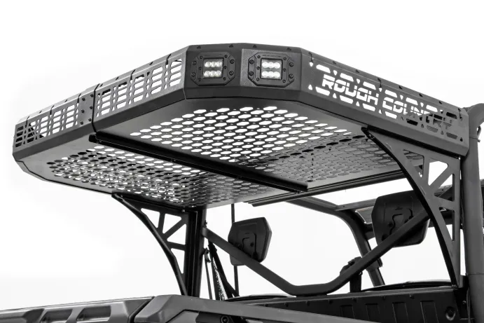 Overland adventures demand reliable cargo space. With Rough Country's Rear Cargo Rack Kit, you can increase your Can-Am Defender's storage capabilities without compromising bed space or dumping functionality. This rugged, heavy-duty steel rack is built to withstand any challenge, ensuring durability and strength through every adventure. Engineered for Toughness & Protection: Constructed from heavy-duty steel, this cargo rack boasts a corrosion-resistant, powder-coated finish that protects against the harshest elements. No matter the terrain, the IP67 waterproof design ensures that your gear stays safe from water, dust, and dirt. This kit s versatile mesh pattern includes multiple tie-down points, providing flexibility to secure all your gear without worry. Seamless & Hassle-Free Installation: Enjoy a quick and easy setup with 100% bolt-on installation no drilling, no cutting, just a secure, factory-like fit. Plus, the full dump bed functionality remains intact, so you can haul heavy loads or dump with ease. For those nighttime adventures, you can opt for two pairs of 2-inch flush mount Cree LED lights, offering superior visibility and durability. Durable & Long-Lasting: Whether you're navigating rugged landscapes or navigating daily tasks, Rough Country's rear cargo rack kit provides unmatched reliability and toughness. With years of protection and a design built to last, it s the ultimate upgrade for your Can-Am Defender.
