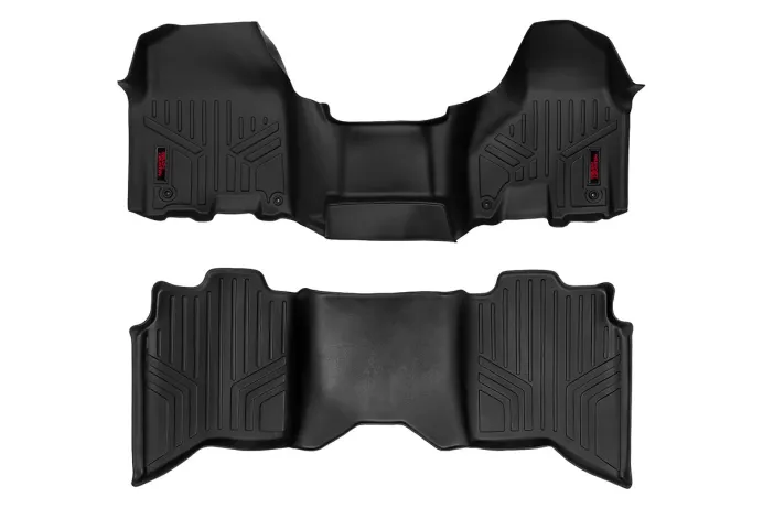 Keep your carpet in pristine condition with Rough Country's Floor Armor: Heavy Duty Floor Mats and Rear Cargo Liners. These eco-friendly, semi-flexible floor mats are made of an ultra-durable Polyethylene that offers a strong, rigid shape that's incredibly easy to clean. Where simple rubber floor mats fail, Rough Country's line of Floor Armor is guaranteed for life and will never crack, split, or break-down over time. The high-quality design extends the lifespan of your carpets and the raised-lip design ensures your interior will always be protected from mud, moisture, and more. These contoured floor mats are laser-measured for each make and model