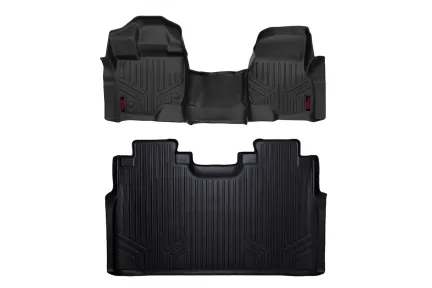 - Title: rough country - floor mats - fr & rr - over hump - ford f-150 (15-25)/f-150 lightning (22-25)/raptor (17-25)