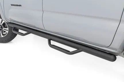 Climbing into your truck should never feel like a workout. With Rough Country's all-new bolt-on Nerf Steps, getting in and out is a breeze. Experience effortless access and elevate your truck with a sleek, durable upgrade. Enhanced Undercarriage Protection: Say goodbye to road debris, rocks, and obstacles that could damage your undercarriage. Our Nerf Steps act as a shield, protecting your vehicle from the harsh elements below. Integrated Stone Guards for Added Protection: Keep your Toyota Tacoma looking like new. The built-in stone guards effectively deflect kicked-up rocks and debris, preserving your vehicle's paint job from potential damage. Sleek, Streamlined Design: No bulky bars here, just a clean, high and tight profile that follows your cab's contours. These Nerf Steps provide a polished, streamlined look that enhances your truck's rugged yet refined style. Built to Endure: Crafted from .084 wall, corrosion-resistant tubing, these Nerf Steps are engineered to withstand anything the road or trail throws at them. From muddy trails to harsh environments, they'll handle it all while staying tough and reliable. Quick and Easy Installation: No drilling required, just bolt them on and enjoy a hassle-free installation. Spend less time working and more time exploring with this straightforward, user-friendly design. Limited Lifetime Warranty: Backed by Rough Country's Limited Lifetime Warranty, these Nerf Steps provide lasting durability and peace of mind for years to come. Step up your truck's style and protection with Rough Country Nerf Steps. Easy installation, superior defense, and a sleek, high-end design, everything you need to take your vehicle to the next level.
