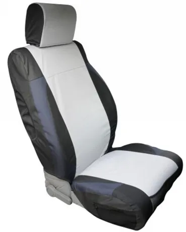 JK custom fit Polycanvas seat covers are durable and a custom fit to factory 07-12 JK front and rear seats. Front seat covers have built in Side Air Bag pocket for added safety. Front and side mesh zippered pockets add convenient storage on all seat covers. Large rear pockets with flaps and small mesh zippered pockets add additional rear access storage. Included rear carabiner clip can be used to secure items. Padded center section is for a custom look and feel. The custom fit headrest covers included on front and rear seat covers. Front applications with headrest come in pairs and matching rear seat cover with headrest sold each. Easy installation with heavy-duty straps and clip. Also includes matching shoulder harness belt pads
