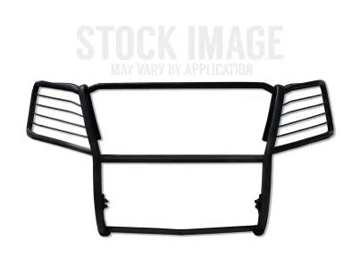 Heavy duty one piece construction, pre-drilled holes for auxiliary lights, protective rubber strips, frame mounted upper brackets, 1 1/2 inch tubing and removable headlight guards. Black semi-gloss powdercoat finish with a 3 year warranty.