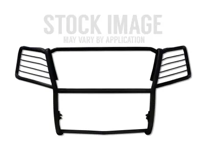 Heavy duty one piece construction, pre-drilled holes for auxiliary lights, protective rubber strips, frame mounted upper brackets, 1 1/2 tubing and removable headlight guards. Black semi-gloss powdercoat finish with a 3 year warranty