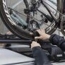 Sleek and versatile fork-mounted bike rack that offers convenient transport for Quick-release bikes.